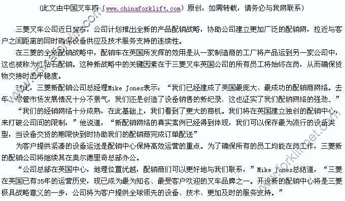 三菱重工和三菱卡特彼勒叉车(美洲、欧洲、亚洲),是全球最主要的叉车厂商之一,拥有数十年的叉车制造经验以及遍及世界的销售服务体系,以5万台/年以上的产量和傲视同业的卓越技术引领物流标准数十年。20年来孜孜不倦致力于支持中国叉车制造业的发展,更使之成为中国用户可信赖的合作者。在此基础上为贴近中国市场,为中国用户提供快捷高效的服务,于2004年3月24日成立菱重叉车(上海)有限公司。