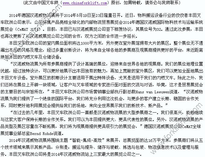 关于丰田自动织机(TICO): TICO是丰田集团的起源公司,成立于1926年,以生产自动织布机开始。产品涉及织布机领域,产业车辆领域,汽车领域,压缩机领域,发动机领域,半导体领域,液晶显示领域和加工中心领域等各行各业。其中,丰田叉车,喷气式织机和压缩机的市场占有率世界第一。丰田集团由丰田自动织机、丰田汽车、丰田通商等13个公司组成。公司的丰田物料搬运事业部全面负责丰田公司产业车辆与物流系统的生产与销售,在日本丰田L&F的标识,在各类产业的物流链中大放异彩。