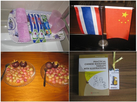 一般首次来到卓一工厂的客户都会收到精美的礼品,如带有ZOWELL标志的名片夹,精装笔记本,刺绣等,如何给再次来访的客人送礼品?经团队讨论我们决定送上健康,英文版的中医马萨基按摩书成了我们的首选,书的扉页上留有祝词和总经理的签名,书中附带着卓一ZOWELL 的特制书签,当带着墨香的礼品交到客户手上时,连声的very good!能感觉出客人异常的惊奇和欣喜,因为非常巧合的是他正在学习按摩,博大精深的中医穴位和针灸深深吸引了他。