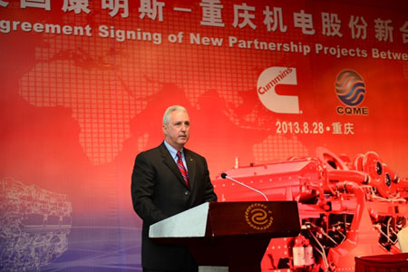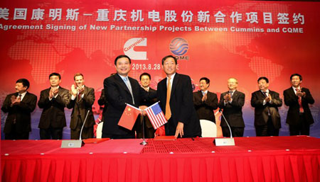 2013年8月28日—康明斯与重庆机电股份有限公司在重庆签署了一系列合作项目,将在重庆康明斯发动机有限公司,双方50:50股比的合资企业,引入新大马力柴油发动机平台,新建大马力发动机制造基地,并组建大马力发动机研发中心。该项合作将为重庆康明斯成长为中国先进大马力产品和技术基地奠定坚实的基础。