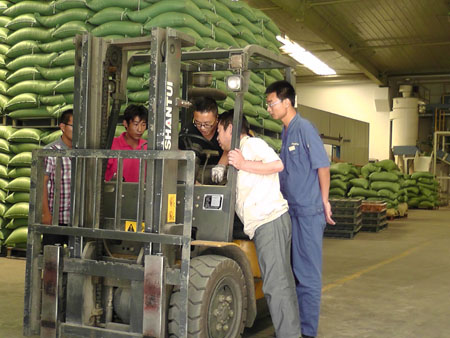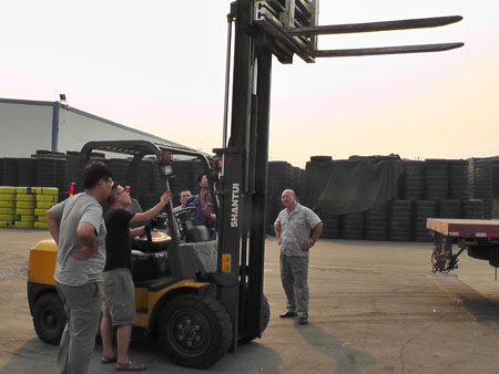 8月17日山推叉车“感恩用户、贴心服务”走访团队到达万达橡胶加工车间正是丁师傅热情的接待了我们,丁师傅平时话不多,大伙都习惯亲切的称呼他“老丁”,但是聊起了山推叉车丁师傅却打开了“话匣子”。丁师傅开始接触山推叉车是2008年,当时不了解山推叉车这个品牌,第一批车到位以后,丁师傅显然对山推叉车的信心并不是很足,车辆交付后接着就迎来了企业生产的高峰期,平均每台车单日工作量达到了10多个小时,每天搬运货物70多吨。大负荷长时间的工作量,对山推叉车来说绝对是个挑战,但是连续一个多月的实际工作表现彻底转变了丁师傅对山推叉车的看法。山推叉车质量过硬的佳话由此在东营橡胶行业不胫而走。