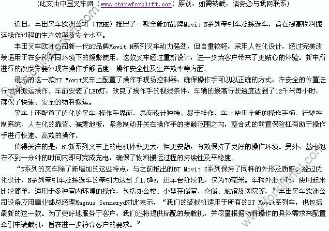 丰田叉车欧洲公司推出全新一代BT Movit N系列叉车