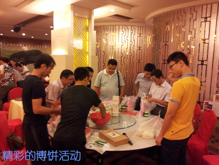 接下来就进入到具有闽南特色的博饼环节。博饼,是厦门人几百年来独有的中秋传统活动,是一种独特的月饼文化,也是厦门人对历史的一种传承。相传,中秋博饼,是郑成功屯兵厦门时为解士兵的中秋相思之情、激励鼓舞士气而发明的。于是,一代一代传下来,就成了如今厦门独具特色的民间习俗。在博饼中用六粒骰子投掷结果组合来决定参与者的奖品。奖品分为六等。名称和读书人的功名对应。每一组只有一个状元,而相传状元在一年内的运气都会相当不错。因此博饼是厦门所独有的,也是最热闹的一个民俗节日形式,是一个大家都非常喜欢,趣味性大、参与性强的活动。果然,一说开始,整个大厅就马上响起了此起彼伏的骰子投掷到瓷碗内所发出的叮叮当当的清脆响声,而欢声笑语也不断地从人们的心地里飘出,各个眼底都洋溢着快乐的微笑,欢呼雀跃声不时从四面响起。同时在晚宴活动的间隙,舞台上也在表演着精彩的节目,整个场面热闹而温馨,充满了喜庆吉祥的节日气氛。最后各个组都决出状元,每组状元在一起又博出一位状元王中王,各组的状元带着兴奋和满足的笑意走上台互相合影留念。这时在耳边响起了悠扬的萨克斯风《我心永恒》,标志着大家将和海斯特叉车心连心,使强悍的海斯特叉车成为大家永恒的强大伙伴,并在未来的岁月里,共铸辉煌!