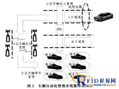 如图3所示,整个系统可以分为3个部分:车辆出入管理、车辆定位管理以及车辆停车管理。其中,车辆出入管理对进入的车辆进行身份的自动识别,如果是本小区的车辆,则自动识别系统RSU可以准确识别其身份信息,如果是非本小区的车辆,则需要进行临时身份IC的配发,之后车道控制系统开启,放行车辆;车辆定位管理则负责对在小区中行驶的车辆进行追踪定位,一方面可以指导车辆更迅速地找到对应的车位,节约时间,另一方面可以更好地掌握车辆的行踪,防止车辆的丢失;车辆停车管理为进入车辆自动分配车位,并在车辆到来时自动开启车位锁,允许车辆进入。