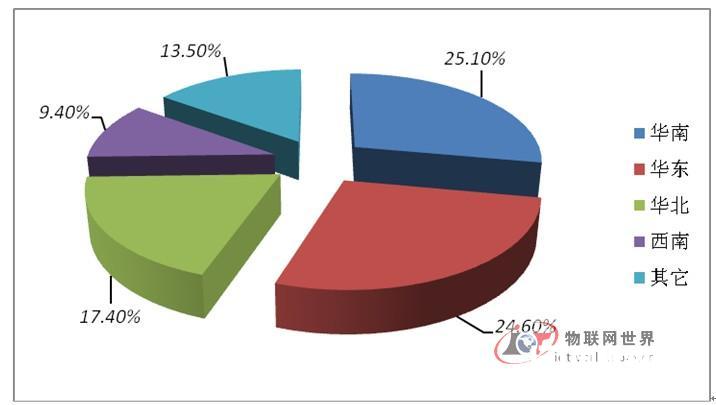 图3 2012年中国RFID行业各地区市场份额