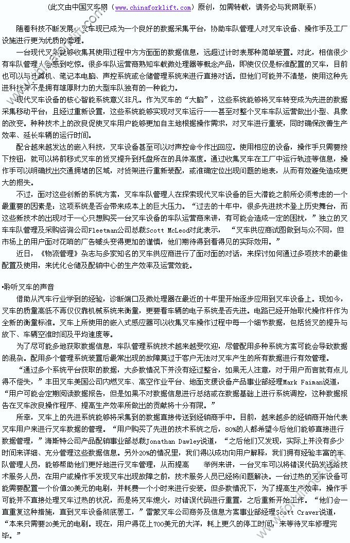 免责声明:中叉网(www.chinaforklift.com)尊重合法版权,反对侵权盗版。(凡是我网所转载之文章,文中所有文字内容和图片视频之知识产权均系原作者和机构所有。文章内容观点,与本网无关。如有需要删除,敬请来电商榷!)