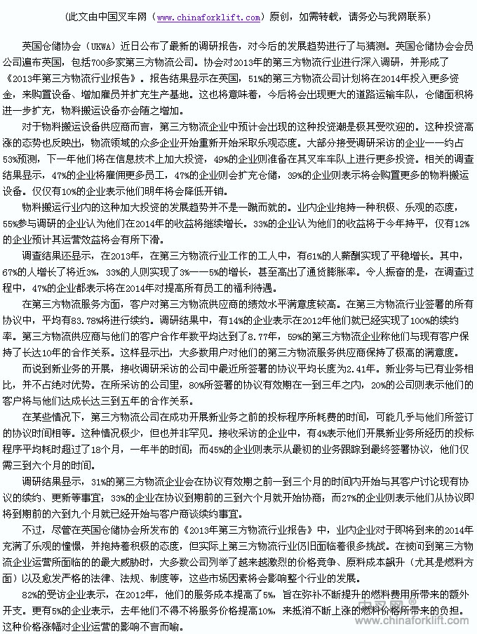 中叉网(www.chinaforklift.com)尊重合法版权,反对侵权盗版。(凡是我网所转载之文章,文中所有文字内容和图片视频之知识产权均系原作者和机构所有。文章内容观点,与本网无关。如有需要删除,敬请来电商榷!)
