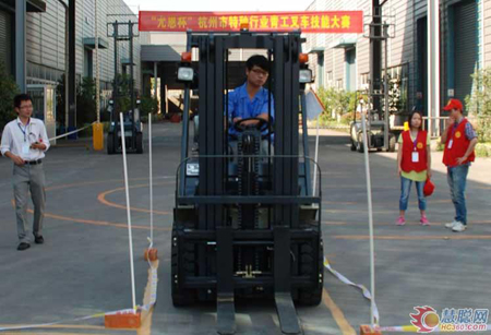 比赛采用实际操作技能竞赛形式,包括绕曲线垒高作业和直弯通道行驶两个部分。按照比赛规则,选手必须在规定时间内完成直弯通道进、退定点搬运,绕限圈行进、定点垒高作业等规定项目,这是对选手们安全驾驶、巧妙过障、精确堆叠与前行后退等操作技能进行的综合考验。我公司选派的两名选手在比赛中聚精会神、沉着冷静,均在规定的时间内完成全部操作项目,都发挥出了较高水平。