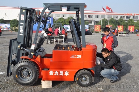 据了解,目前,中国工程机械行业维修工人约20多万人,随着科学技术以及产业和企业自身的快速发展,并朝着向国际制造业一流企业的迈进,对人才的要求越来越高,鉴于此通过举办“合力杯”竞赛展示中国工程机械企业的整体实力,展现现代企业技术工人操作、调试和维修技能水平,激发全行业技术工人爱岗敬业、钻研技术、改进创新的热情,持续营造崇尚技能、岗位成才的行业氛围,交流并推广先进的操作技法,构筑高技能人才成长的绿色通道。为叉车人才搭建施展才能的舞台和企业之间进行叉车经验交流提供了重要的平台。据悉,本次“合力杯”全国第二届工程机械修理工(叉车)职业技能竞赛是国家二类比赛。竞赛遵循“行业动员、广泛参与、赛鉴结合、注重实效、彰显实力、隆重表彰”和坚持公开、公平、公正的原则。设三个竞赛科目:操作技能考核、理论知识考试和技术答辩,分别占总成绩60%、30%、10%。竞赛选择工程机械行业内规模大、影响力强的合力和柳工提供的3吨内燃式液力(CPCD30)叉车、2-2.5吨电动(CPD25)叉车作为竞赛设备。竞赛分两个组别比赛和单独设奖。按组别设个人优胜一等奖、二等奖、三等奖、优秀奖若干名,对获奖选手颁发奖杯、奖章、奖金及荣誉证书等。对获得决赛前三名的选手,授予国家人力资源和社会保障部颁发的“全国技术能手”称号;对获得决赛第一名的选手,报请全国总工会优先推荐参加“全国五一劳动奖章”评选。同时竞赛设团体优胜奖、团体优秀奖若干名,颁发奖牌和荣誉证书。