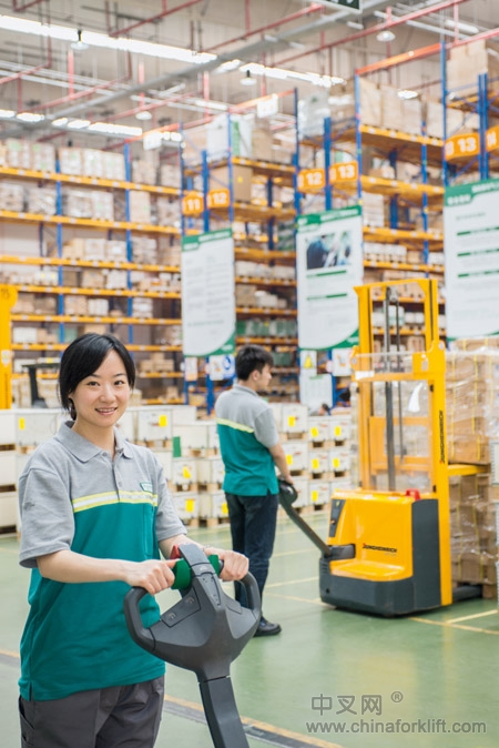 在上海配送中心的货物存储和订单拣选方面,永恒力的高质产品也发挥着重要作用。20台永恒力ETV 214前移式叉车不仅保证了仓库内的顺畅运行,同时还保证了高效的生产力。这一系列的叉车是在德国汉诺威市所举办的2011年物流展CeMAT上推出的,该物流展是全球内部物流领域的重要展会。这一代叉车的关键特点之一便是将近提升了10%的生产速率。“实际上,这是此款堆垛机起降速度的提高以及驱动加速的大幅度完善所带来的成果,” 永恒力叉车(上海)有限公司的总经理Alexander Özbahadir表示,“尽管已经实现了生产速率的提升,但是相比于以往已经具备极佳环保性能的车型而言,我们仍然能够将新车型的能源消耗量进一步降低10%。”