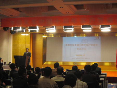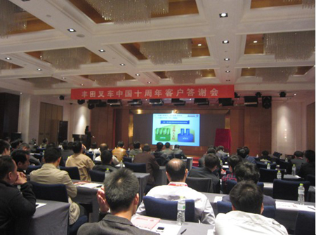 2013年时值丰田叉车进入中国市场十周年之际,“丰华十载、至恩感怀”行动之客户交流会活动正在全国主要大区如火如荼的进行之中,继西南交流会在昆明成功落幕后, 11月1日,由丰田产业车辆(上海)有限公司主办,北京市丰田叉车销售有限公司协办的“丰田叉车中国十周年华北交流会”在北京丰大国际大酒店隆重召开。来自北京,河北,天津等地各行业客户一百多人共同聚首于此次盛会,与丰田叉车共话十年携手历程、展望未来跨越发展。