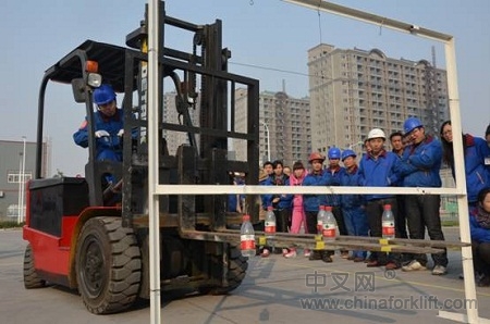 据了解,本次比赛每名选手需在限定时间内将货叉上的5瓶矿泉