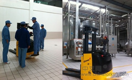 近期北方某知名乳业企业在黑龙江齐齐哈尔的新工厂即将开始投产,为解决原料送到进料斗平台,需要使用电动堆高车,该乳业公司在中国市场上进行了广泛的市场调研,经过综合比较,卓一电动叉车凭借着技术、售后服务、行业口碑一举拿下订单。