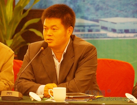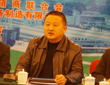 比亚迪叉车销售总经理王惠明在会上发言