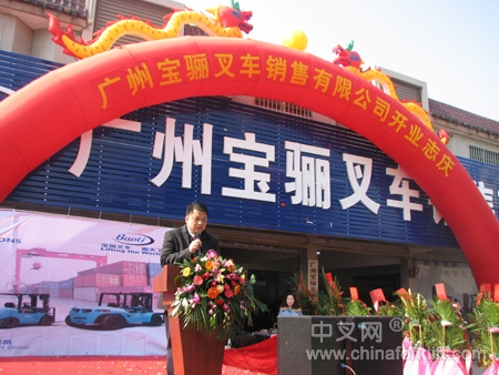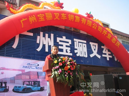 广州宝骊叉车销售有限公司董事胡炳祥在开业典礼致辞