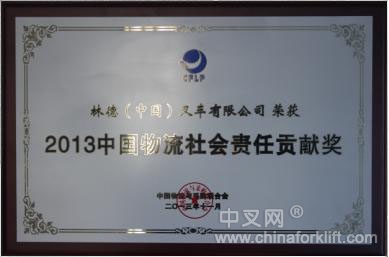11月23日, 由中国物流与采购联合会主办的“2013(第十一届)中国物流企业家年会”在武汉召开,令人期待的2013中国物流年度评选活动结果也在当晚的颁奖晚宴上揭晓,林德(中国)叉车有限公司喜获“2013中国物流社会责任贡献奖”。该奖项充分肯定了林德(中国)近年来对社会责任做出的突出贡献,树立了物流行业典范,带动社会正能量。