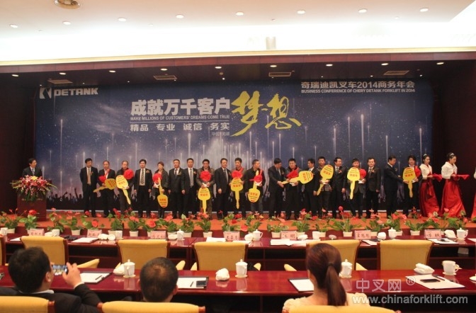 会议最后,迪凯叉车与战略经销商代表就2014年目标协议举行了签约仪式,一份协议书就是一份迪凯叉车与签约经销商合作共赢的郑重承诺,也是2014年携手发展的坚定决心。这份承诺和决心将鼓舞着迪凯叉车全员及现场的经销商代表们不忘此志,不虚此行,把2014年打造成迪凯叉车在国内外市场上创造辉煌业绩的凯旋之年,打造成成就万千客户梦想的圆梦之年!