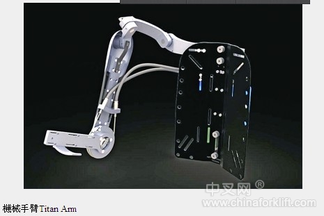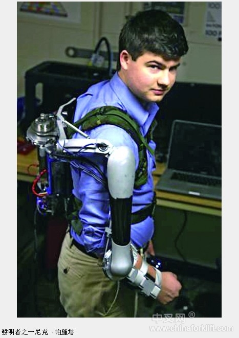 宾夕法尼亚大学机械工程的几位学生尼克 · 帕罗塔、伊莉莎伯 · 彼蒂、尼克 · 麦吉尔和尼科· 弗拉基米罗夫共同设计了电池驱动的机械手臂“The Titan Arm”。只要戴上机械手臂,举起四十磅的重物简直无难度。机械手臂外观看来有如电影情节中英雄盔甲的一部份,只要选择“传输线驱动”,然后使用者背上电池驱动器并套上手臂就能使用。机械手臂做工虽然不太精细,但具防水功能。它的零件均是由3D立体打印和电脑程式设计,这些零件多数为铝质。机械手臂重约十八磅,较发开者之一的彼蒂平日携带的背包还要轻。