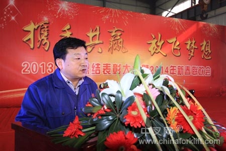 公司总经理张林作工作报告。报告指出,刚刚过去的一年是合叉叉车值得自豪和骄傲的一年,在董事会的的正确领导下,在全体员工的共同拼搏下,各方面工作都取得了长足的进步。叉车产销量同比增长明显;“产学研”联动优势突出,新产品、新专利层出不穷;质量管理年成果显著,质量控制水平和工艺水平得到进一步的完善;基础管理取得重大成果,员工现场意识、安全意识、节约意识明显增强;党工团立足服务企业、服务员工、服务社会三条主线,开展了形式多样的活动,丰富了企业文化的内涵。一年的努力、一年的付出,合叉叉车的品牌和声誉在全国乃至国际得以更加延伸和展现,为我们进一步拓展事业、描绘宏伟蓝图奠定了坚实的基础。张总同时也分析了工作中存在的问题及差距,并对2014年的工作进行了部署,他鼓励大家务实创新,科学发展,继续拓展市场深度和广度,研发适应市场需求的产品,提升基础管理水平,完善考核机制,加强人才队伍建设,为全面实现合叉叉车“承重托、举天下”的梦想而奋斗。