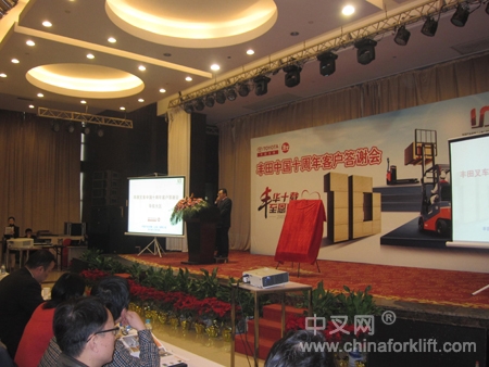 2013年,在丰田叉车进入中国市场的第十个年头,以“丰华十载•至恩感怀”为主题的一系列十年答谢活动在全国主要大区接力开展——从饮水思源的【十年感恩•客户案例集】采访编制、到寻根溯源的【“万年青”丰田叉车】招募,丰田叉车和携手多年的中国客户一起回顾了十年成长之路。自7月起十年感恩行动之客户交流答谢会活动火热启动,先后走遍了全国的主要大区,2013年12月20日继华南,西南,华北之后,十年答谢活动收官之作——“丰田叉车中国十周年华东交流会”在昆山君豪大酒店隆重召开。来自上海、江苏、浙江、安徽等地各行业客户总计两百余人出席了会议,华东交流会也成为自7月以来来宾规模最大的一场交流盛会。