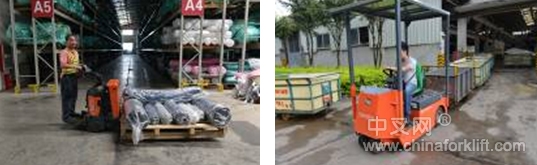 除了货物形态多样化之外,溢达曾经有的另一个物流课题便是成本控制。在采访过程中,严经理告诉记者,溢达与丰田合作之初,物料搬运设备主要为人力托盘车和推车,生产车间、库房内,产品、原料的水平搬运主要是依靠人力,再加上当时使用的平衡重叉车设备车龄过长,造成劳动成本和维护成本居高不下。通过丰田公司的提案,溢达决定导入BT电动托盘车LPE200以替代人力搬运设备,经过实测比对发现,在一次搬运作业循环中,人力搬运车有超过一半的时间是在行走,有较大的效率损失,而电动托盘车则可以实现更高的搬运效率,单循环的作业效率可以提升50%,此外,LPE200可收放的站板设计能更灵活应对各种距离的水平运输,帮助降低在中长距离运输过程中的驾驶人员疲劳。另一方面,针对车间和原料库房间的长距离运输,溢达导入了丰田电动牵引车CBT6来替代平衡重叉车,可同时胜任室内、室外长距离运输的CBT6,最大牵引重量达6吨,可同时牵引3-4个挂车,相较于平衡重车可实现单次多品目少量化的运输方式,实现对生产车间准时化的原料补给。作业效率的提升,也就意味着劳动成本的削减,通过采用高效的物流设备,溢达可将过剩的人力投入到新建的项目中去,在劳动成本日益高涨的今天,可实现对这部分成本最合理化的控制。在旧车型替代提案方面,新车购入带来的维修成本改善是不言而喻的,在此基础上,为了进一步优化购入成本,丰田叉车销售人员通过对作业现场的观察和相关数据采集,根据各作业场的叉车车龄、使用率,进行了包括车型设置、车辆配置在内的一整套车队管理提案,通过小吨位覆盖大吨位、电动堆高机替代平衡重车,实现了车辆购置成本的大幅削减。