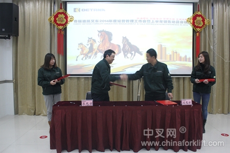会中,销售团队及订单交付系统郑重宣誓,鼓舞了公司全体销售、生产一线的战士们不畏艰难,向着目标前进;公司全员为他们摇旗呐喊,祝他们出师大捷!会议最后,公司领导与项目责任人签订了2014年度经营承包书、重点项目承包书及各区域的销售目标责任状,对于努力实现2014业务目标,他们给出了庄严承诺。