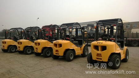 近日,一拖(洛阳)搬运机械有限公司14台东方红越野叉车装车发往国外。其中25型越野叉车12台,另两台是新产品,即30型越野叉车和TC4015型越野叉车。