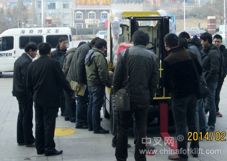 青岛丰科总经理张乃伟先生在致辞中提到,在2013年山东港口系统举办的叉车技术大比武中,海斯特叉车被指定为唯一比赛用车,这说明海斯特叉车在港口行业正拥有越来越大的影响力。也海斯特区域经理金先生简要介绍了海斯特公司的近况,技术支持钱先生为现场用户带来上海组装生产的3吨柴油叉车,美国生产的5-10吨叉车,荷兰生产的大叉车以及正面吊的专业介绍。当钱先生介绍到荷兰工厂拥有海斯特自己的船运码头时,客户们对此赞叹不已。演讲过程中,甚至数次被客户的问题打断。现场用户在下午举行的室外实车演示时表现出很高的热情。寒风中,客户们踊跃驾驶海斯特叉车,体验单踏板操作的独特魅力。