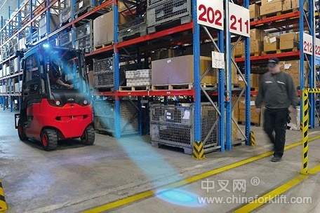 安全设备也得到叉车制造商的重视,以林德为例,为了更有效地消除叉车安全隐患,林德物料搬运就设计了BlueSpot ™ ,该技术从视觉上可以提前预知车辆的运行位置,特别是在嘈杂的作业环境中,‘蓝点’的使用效果非常明显,能够起到安全哨兵的作用,排除潜在的安全隐患,也增加了安全生产的砝码。林德叉车设计的BlueSpot ™ ,是工业车辆创新的光学驱动路径预警系统,能够在无噪音的情形下,有效地保证行人在狭窄过道以及视野欠佳的区域的安全。该BlueSpot ™由两个高亮度、长寿命的LED灯组成,连接到司机护顶架的顶部,在叉车前后数米的左右两边各投射出一个很大的蓝色光点。如此,对于有可能出现的行人和司机来说,是一个极好的警示方式。