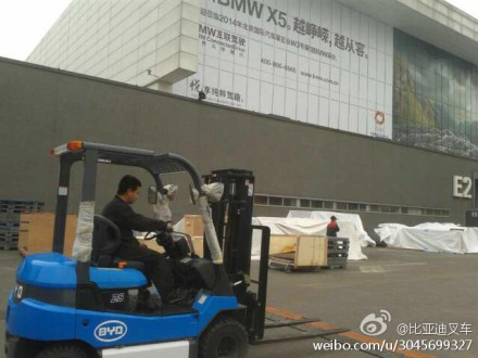 2014年北京国际车展于4月20在中国国际展览中心开幕,吸引了各汽车制造商的各款概念车,比亚迪叉车助力北京车展。