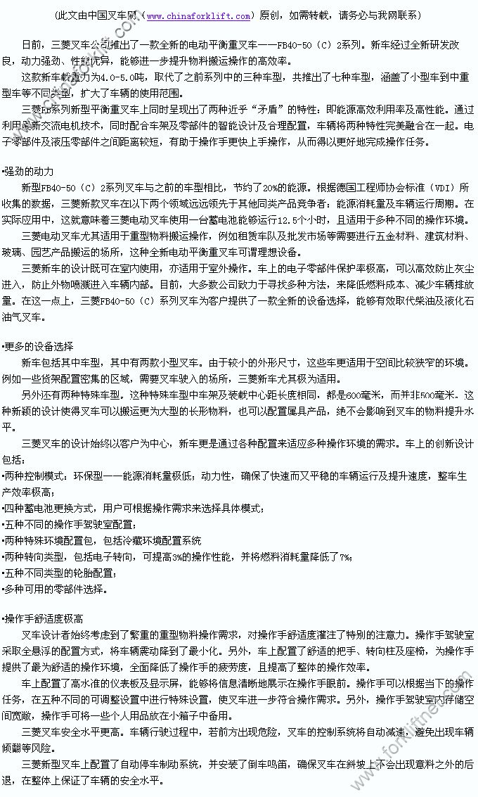 三菱重工和三菱卡特彼勒叉车(美洲、欧洲、亚洲),是全球最主要的叉车厂商之一,拥有数十年的叉车制造经验以及遍及世界的销售服务体系,以5万台/年以上的产量和傲视同业的卓越技术引领物流标准数十年。20年来孜孜不倦致力于支持中国叉车制造业的发展,更使之成为中国用户可信赖的合作者。在此基础上为贴近中国市场,为中国用户提供快捷高效的服务,于2004年3月24日成立菱重叉车(上海)有限公司。