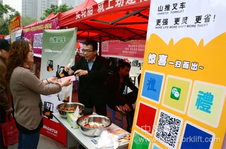 “青春有约”相亲活动得到了公司领导的高度重视,活动小组联合各单位精心策划和多方发动,广大未婚男女青年的积极参。为了提高活动的参与性和娱乐性,还为本次相亲活动精心准备了电影套票、浪漫烛光晚餐等互动奖品,鼓励青年员工通过相亲活动找到属于自己人生的伴侣,实现事业与家庭的双丰收。“山推叉车”官方微信平台发挥自媒体灵活、便捷、高效的特点,通过组织线上活动宣传,组织线上、线下有奖互动,发动鼓励青年员工参加本次活动。为活跃现场气氛,“山推叉车”官方微信还为现场组织了“关注微信送惊喜”的活动,秘制茶鸡蛋、神秘礼物的派赠将全场气氛推向了高潮。