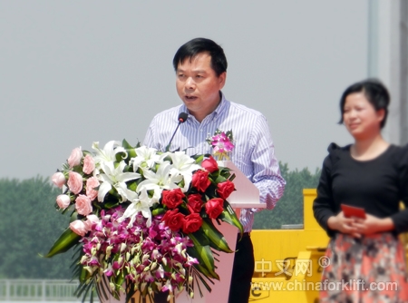 上午10:38分,交车仪式正式开始,海斯特(中国)总经理林孝昌先生致辞,林总表示:感谢客户对海斯特®品牌的肯定,非常高兴能和海斯特的忠实用户欢聚在一起共同见证这激动人心的时刻。一直以来,海斯特公司严格按照“强焊的叉车,强大的伙伴”的理念来生产海斯特叉车,经营海斯特®品牌。海斯特拥有极其出色的研发团队,以及遍布全球的一流的经销商团队,同时在制造高档叉车所需的人员方面,在纯熟的制造工艺、丰富的生产管理方面,获得了无以伦比的竞争优势,这也使得海斯特成为享誉全球的叉车领导品牌。海斯特公司寻求和客户之间的长期合作,客户的意见能帮助我们进一步提高产品的质量和丰富产品种类。希望此次交付的10台叉车能为花山港的物流运输助力。