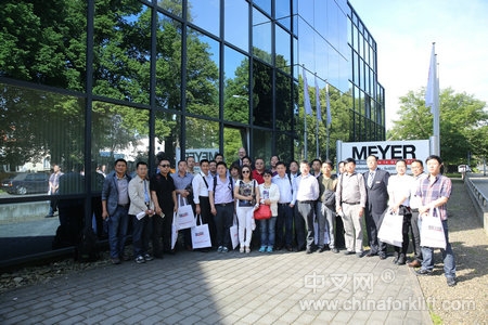 作为全球规模最大的物流领域展览会,集聚全球顶尖物流设备与技术,物流行业影响力最高的专业展会——德国汉诺威国际物流展于2014年5月19日-23日在德国汉诺威国际博览中心隆重举行。在此期间,中叉网组织的CeMAT 2014参观团44名成员于北京时间2014年5月21日下午15:00(德国当地时间上午9:00)抵达位于萨尔茨吉特的德国Meyer属具公司进行为期半天的参观拜访。得到了德国Meyer属具公司高层的热情接待,博索尼奥拉茂(无锡)叉车属具有限公司销售总监李伟先生的陪同参观。