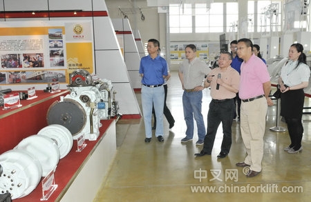 在参观合力展厅过程中,杨安国总经理介绍了公司发展概况,重点介绍了企业自主创新、经营管理模式、关键零部件、产品出口及新品研发情况。在听取和询问了安徽合力近年来国内外产销经营规模和产业投资发展情况后,汪副局长对安徽合力所取得的成绩给予了充分肯定,并衷心祝愿安徽合力取得更大的发展,早日进入世界叉车制造业五强。