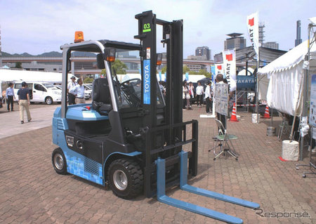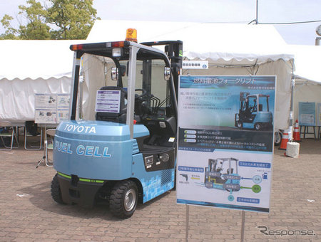 在本月17至18日召开的“环保&安全 神户汽车生活Festa2014”展会上,日本丰田自动织机公司(Toyota Industries Corporation)展出了一款“燃料电池叉车”样品车。