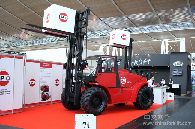 IPO重型越野叉车在2014 CeMat展会上,载重7吨,具体优越的越野性能。