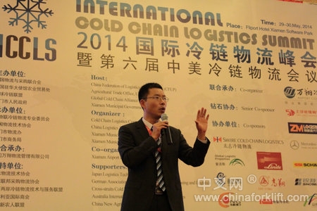 目前,我国冷链物流的发展正面临诸多机遇和挑战,为了寻找中国冷链物流企业明天的发展之路,中国物流与采购联合会于2014年5月29至30日在厦门市举办“2014国际冷链物流峰会暨第六届中美冷链物流会议”。来自欧美、日韩、澳新、港澳台等多个国家和地区的冷链政府官员、学术专家、企业领袖、业界精英等500余人聚集一堂,共话变革背景下的冷链发展新机遇。此次林德(中国)展出了电动托盘搬运车T20,电动平衡重式E16C及E20P三款经典冷库专用车型。林德(中国)叉车有限公司销售市场总监陈晓春先生出席并发表了题为“解冻您的物流作业效率 -高效冷链物料搬运解决之道”的精彩演讲。
