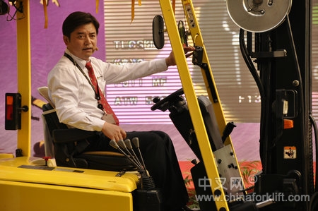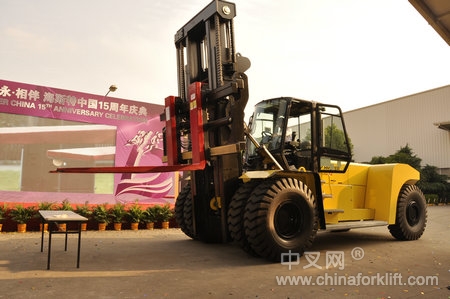 此外,海斯特在现场展出了32吨大吨位叉车,此款叉车采用现代清洁柴油发动机,标准的油浸式制动器,坚固耐用的驱动桥以及先进的自动切换变速箱,通过将这些配置巧妙的结合起来,可以确保即便是在最艰难的作业条件下工作,仍然能够保持最大的生产率和可靠性。均匀的引擎扭矩提供平稳的发动机性能,出色的加速度和牵引力。采用发动机和变速箱保护系统以及标准的油浸式制动器,可以确保叉车运行可靠。坚固耐用的结构使叉车适合于装卸重负荷,例如装卸铝制品、钢制品或集装箱。可调整驾驶室位置(中心位置或左侧位置),以满足装卸操作的要求。可以选择不同类型的门架及车架、货叉及前端配件,也可以选择不同类型的吊具,以满足不同的应用需求。为了体现海斯特重型叉车的出色的操作灵敏性和控制的精准性,海斯特工作人员在现场示范了驾驶重型叉车精准的从桌上叉取一枚鸡蛋,并悬空长达一分钟,这一精彩的小表演直观的体现了海斯特大叉车大而巧的特点。