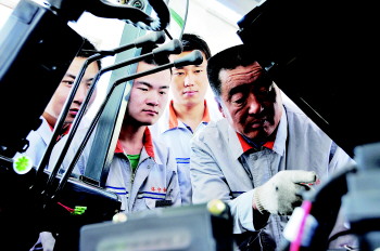 周金炳在指导徒弟们。通讯员 辛虎 摄
