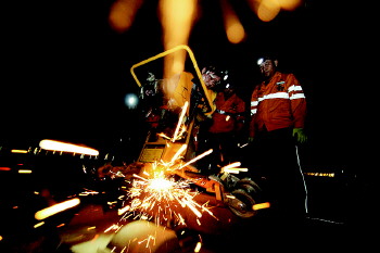 济南西工务段作业人员对道岔鱼鳞纹进行技术攻关。通讯员 崔俊杰 摄