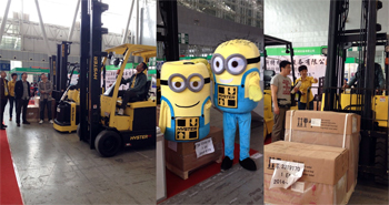 在展会现场展示的叉车包括有,海斯特平衡重式电动叉车E65XN ,E120XN,平衡重式内燃叉车H3.00DX; 前移式叉车R1.5EX,电动牵引车T5ZAC等。奥斯特公司工作人员在现场讲解并且实车演示,为客户提供专业的答疑与优质的服务,同时还有卡通玩偶 “小黄人”左右为伴,引起了现场观众的欢乐围观。得益于此次展会,海斯特叉车品牌在黑龙江及东三省地区的知名度得到提升,也促进了公司和客户之间的沟通交流。