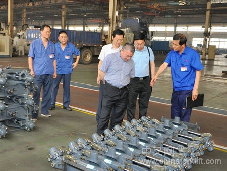 日前,安徽叉车集团总经理杨安国,安徽合力总工程师马庆丰一行莅临安庆车桥厂指导工作,车桥厂领导班子热情接待了杨总一行。