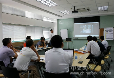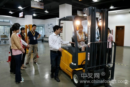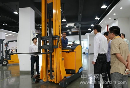 随后,与会来宾分小组来到永恒力叉车操作体验中心,在专业技术培训师的操作及示范下,纷纷上车亲身体验永恒力叉车的性能及各项功能。在体验过程中,来宾们针对各自工厂内车辆的操作和管理问题也积极地与培训师进行探讨交流,培训师都给予了专业的解答和建议。