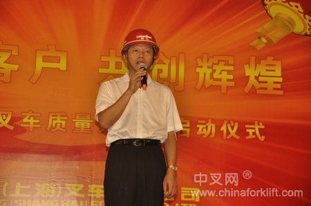 启动仪式上,龙工(上海)叉车有限公司总经理谢英华先生发表了激情慷慨的致辞并对此次活动寄予厚望。他在致辞中说道:“这次活动对龙工叉车意义重大,作为第一次向全国提出质量万里行活动,希望我们的代理商、售后服务的领导和全体员工,通过这次活动,把龙工人的精神、口号、服务,传递给客户。希望我们全体叉车事业部人员从今天开始,都行动起来,由自身出发,从每一件小事做起,把产品质量当成我们的铁饭碗。从骨子里认认真真反省自己的不足,从而改进我们的工作、产品设计、质量检验等。最后,预祝万里行活动取得圆满成功。”