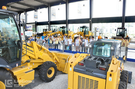 当日下午2点,烈日如火,师生一行抵达公司就径直进入公司文化产品展厅参观。在展厅讲解员的介绍下,师生们了解了公司的发展历程。“大家面前的这台装载机是柳工1968年生产的我国第一代Z435轮式装载机。时隔41年后的2009年,我们意外地发现它仍在柳州一采石场正常作业。”听到这里,参观的师生们不无发出阵阵惊叹之声,纷纷拿出相机与这台“老古董”合影。