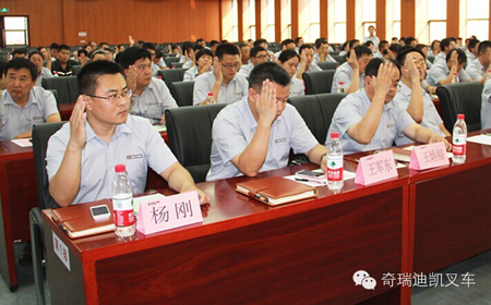会议号召全体员工继续坚持“创新驱动、内涵增长、管理升级、全球战略”的经营方针,靠智慧和勤奋,通过体制与机制创新,持续打造奇瑞重工核心竞争优势,推动转型升级,实现公司的战略发展目标。