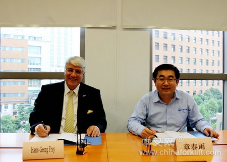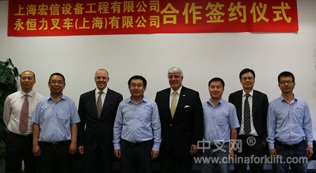 签约仪式之前,双方举行了一段简短的友好会谈。宏信设备总经理章春雨向Hans-Georg Frey先生介绍了宏信设备的发展战略及经营情况,并对与永恒力在中国区域开展合作提出具体的期望,Frey先生也向宏信设备参会人员介绍永恒力在华业务的经营战略,并表示宏信设备作为永恒力集团在华设备租赁行业最大的客户之一,将全力配合宏信设备在叉车租赁领域的市场开拓,最大程度保障产品供应及售后服务。