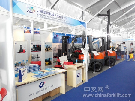 上海基澎机械科技有限公司(Shanghai Gather Power Industry Co.,Ltd)携多款“GP” 品牌物流机械亮相本届博览会。展示的产品:一台3吨双燃料叉车(CPQYD30)、一台3吨柴油叉车(CPCD30)、2台电动堆高车(ERC215,ERC218)和一台电动托盘车(ERE15)。本次展出的所有产品都为高端配置,其中3吨双燃料叉车配备日本进口尼桑K21发动机,豪华座椅,三级全自由门架等,吸引了众多观展商及采购商的高度关注。部分观展商更是在现场表示代理“GP”产品,达成意向订单金额达150多万美元。