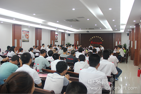 销售培训会于19日上午9时在总部一楼会议室召开,会议主要围绕“集团经营战略理念及销售人员的相关管理及激励制度”主题展开,由侯泽兵总经理、国内事业中心常务副总监杨自云主讲。侯总强调,要想让企业走的好,必须注意三个问题:人才通道通畅、技术体系完整和配件供应正常。与会人员认真听取会议内容,并及时做好笔记。